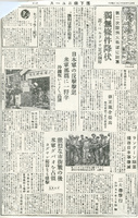 A paper flier issued by the Allied Forces during World War II for Filipinos after the return of General Douglas MacArthur and the Filipino President, Sergio Osmena, in 1944. The flier was probably airdropped on the Philippines soon after General MacArthur and President Osmena landed in October, 1944. It features pictures of MacArthur and President Osmena arriving in the Philippines, as well as the American flag being raised. This is one item from a scrapbook of propaganda leaflets and related materials that was compiled by the Psychological Warfare Branch of the Allied Forces in the Southwest Pacific Area during World War II. The scrapbook belonged to Colonel Karl F. Baldwin of the United States Army, who helped establish the propaganda program. It contains approximately 200 pieces of propaganda, mostly in Japanese, that were intended for distribution in the Philippines, Japan, and other nearby areas.