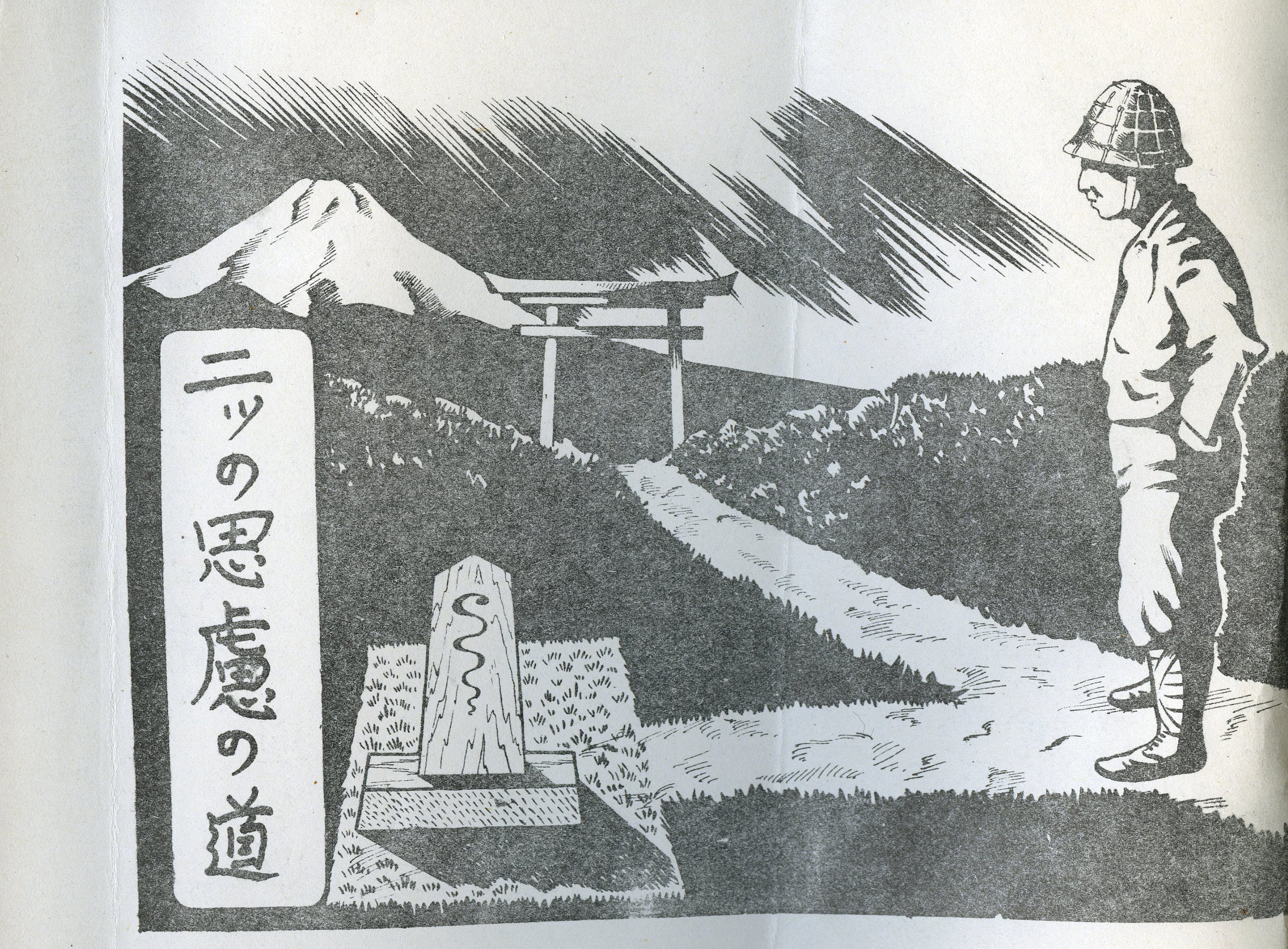 A propaganda leaflet issued by the Allied Forces during World War II after General Douglas MacArthur returned to the Philippines in 1944. The leaflets were probably airdropped to Japanese troops on the Philippine Islands soon after General MacArthur landed in October, 1944. One side features an illustration of a Japanese soldier standing at a fork in the road. The other side asks the troops to think if they would rather return home to their family or die fighting. It contains instructions on how to surrender to American forces. The intent of the leaflets were to induce the surrender of Japanese troops by demoralizing them. It is numbered '35 J 6'. The leaflet is accompanied by an official description and translation of the text into English. This is one item from a scrapbook of propaganda leaflets and related materials that was compiled by the Psychological Warfare Branch of the Allied Forces in the Southwest Pacific Area during World War II. The scrapbook belonged to Colonel Karl F. Baldwin of the United States Army, who helped establish the propaganda program. It contains approximately 200 pieces of propaganda, mostly in Japanese, that were intended for distribution in the Philippines, Japan, and other nearby areas.
