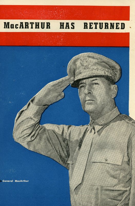 The Psychological Warfare Branch of the Allied Forces in the Southwest Pacific Area used General MacArthur's return and the photograph in booklets and fliers to lift the spirits of Filipinos and Americans alike.