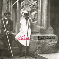 A photograph of Pacific University president, Robert F. Clark, and a student on the steps of Marsh Hall in 1917. The two are holding rakes in preparation for Clean-Up Day. The caption with the photograph identifies the student as Alice Bollinger. Clean-Up Day was a long-held tradition at Pacific University. One day a year in late fall, students and staff would gather at Marsh Hall before repairing and beautifying the campus. Students would often dress as hobos, farmers or cross-dress. This picture appears in an album that was compiled by Greta McIntyre Sheeley, a 1920 Pacific University graduate.