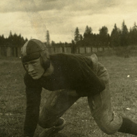 Pacific University Football Player Glenn 'Red' Sheeley in Three-Point Stance